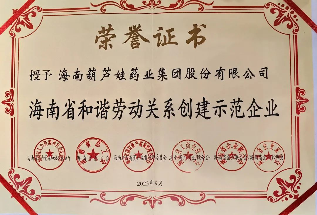 尊龙官方网站药业集团获评“海南省和谐劳动关系创建示范企业”
